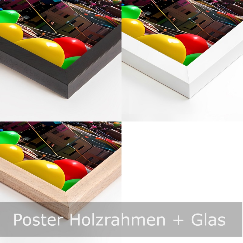 Poster: Holzrahmen in Schwarz, Weiß oder Natur. Mit Frontglas.