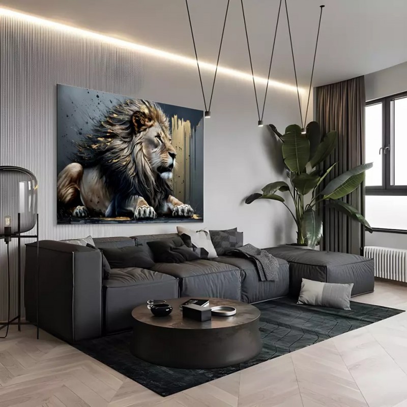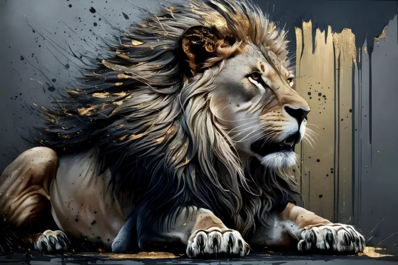 Löwe Schwarz-Grau-Gold Modern Tiere Wandbild 3D-O