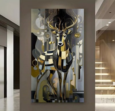 Hirsch Schwarz Gold Beige Grau Wandbild Abstrakt Tier